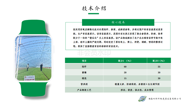 本產(chǎn)品針對水稻旱育苗大量挖取耕層土,耕層破壞嚴峻的現(xiàn)實,利用秸稈、蘑菇菌糠、稻殼、沼渣等農(nóng)林廢棄物經(jīng)過工廠化快速熟化,賦予全套的營養(yǎng)、防病、除草配方,制造成新型的嶄新的“無土育苗基質(zhì)”。