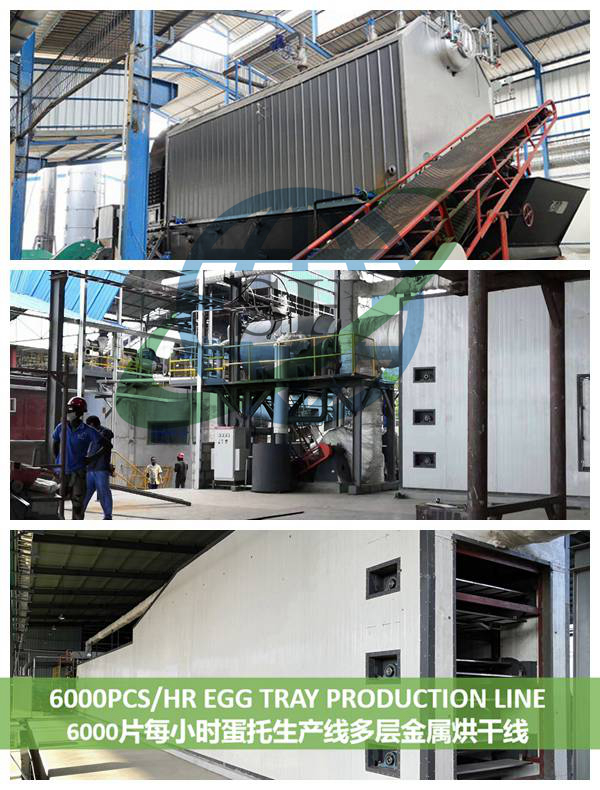 另外,客戶(hù)不僅利用上了自家的廢料生產(chǎn)蛋托,還看上了非洲兩種遍地都是的農(nóng)廢——棕櫚殼和椰殼,那么,它們能為蛋托生產(chǎn)做什么呢?答案是制成生物質(zhì)燃燒顆粒作為蛋托烘干能源,在與我司工程師的研究討論后,客戶(hù)一并采購(gòu)了生物質(zhì)鍋爐,該生物質(zhì)燃燒鍋爐可連接蛋托烘干線(xiàn),以生物質(zhì)顆粒為燃料烘干蛋托。