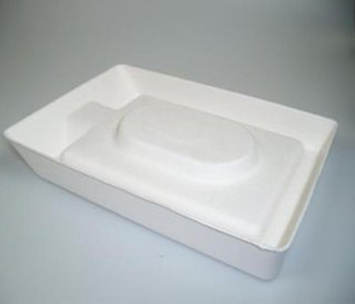 紙漿模塑制品是以紙箱邊角料、新聞紙、白色純木漿等為原料,經(jīng)過(guò)碎漿并調(diào)配成一定濃度的漿料,在特制的模具上經(jīng)真空吸附成型,再經(jīng)過(guò)干燥而成不同種類和用途的內(nèi)襯體包裝制品。這種包裝制品,具有與包裝物外型相吻合的幾何形狀和良好的防震、防沖擊、防靜電、防腐保護(hù)效果,經(jīng)各項(xiàng)物理指標(biāo)測(cè)試,其性能和功效足以替代并優(yōu)于發(fā)泡致辭苯乙稀(EPS)、PS和PVC包裝制品,并且在防震功能、環(huán)保、價(jià)格及防靜電等指標(biāo)和功能上占據(jù)優(yōu)勢(shì)。廣泛適用于電子、家電、工業(yè)儀表、機(jī)械零部件、電工工具、電腦、家電、玻璃、陶瓷和農(nóng)產(chǎn)品等行業(yè)的內(nèi)襯包裝上。